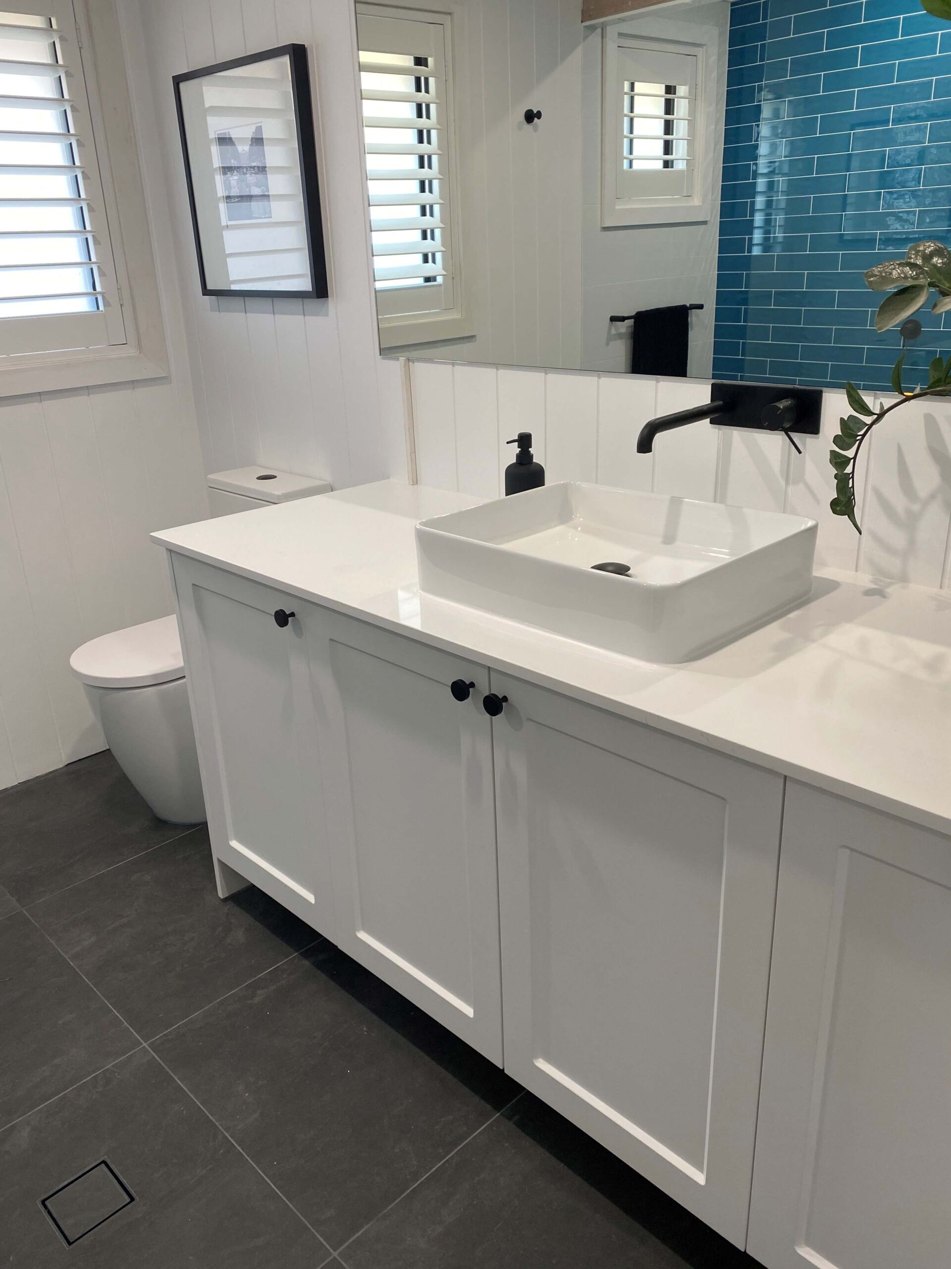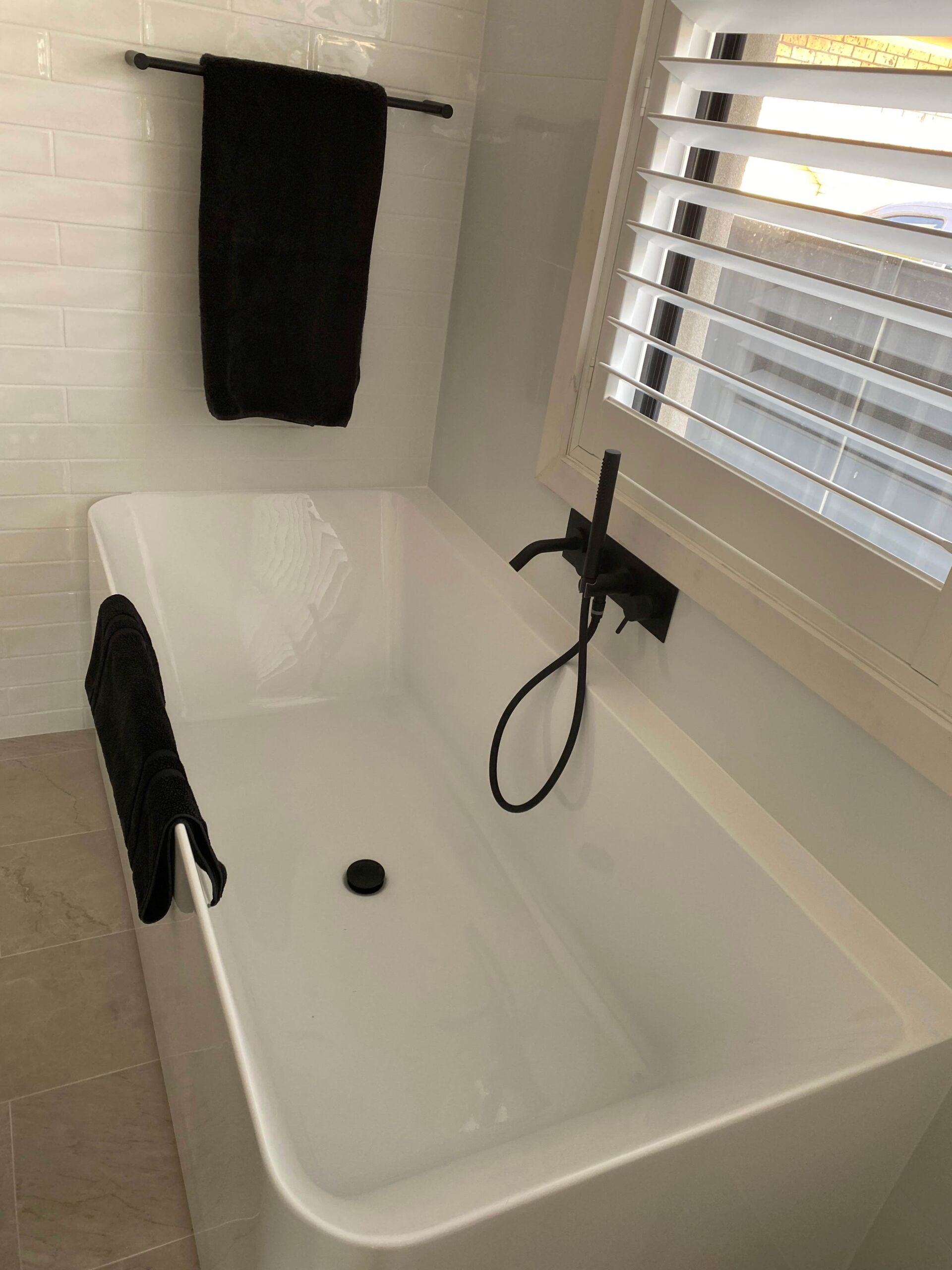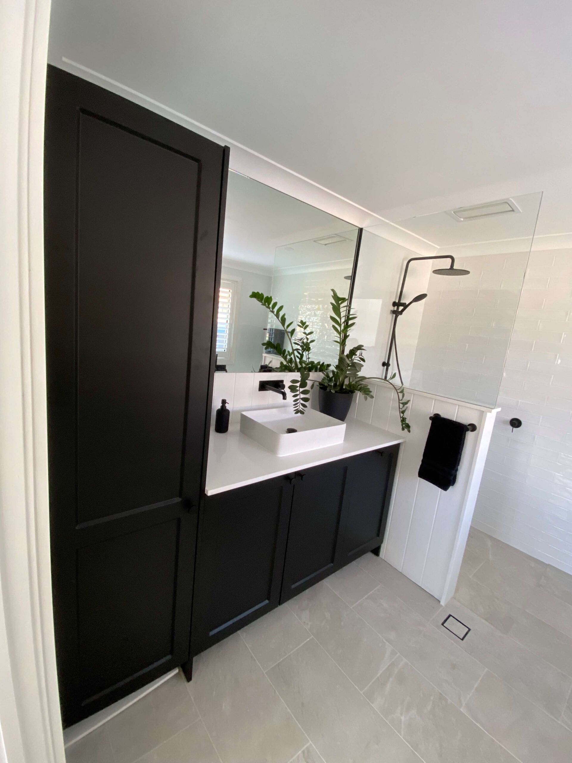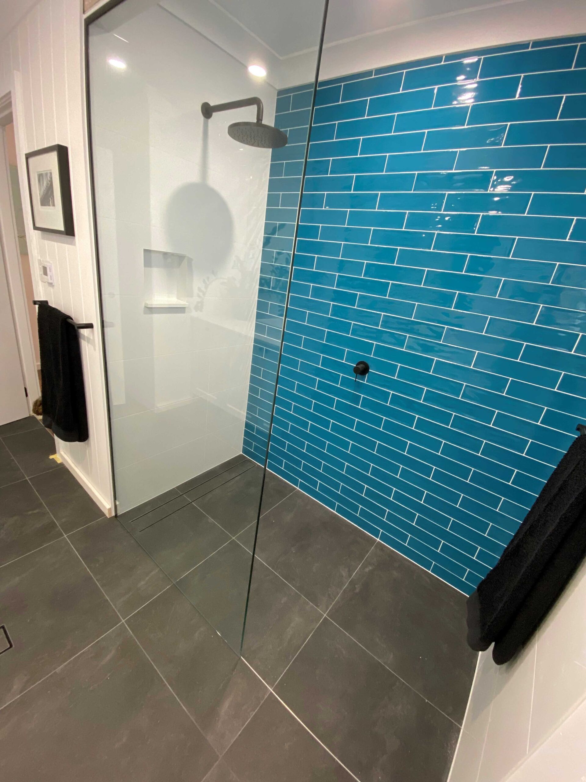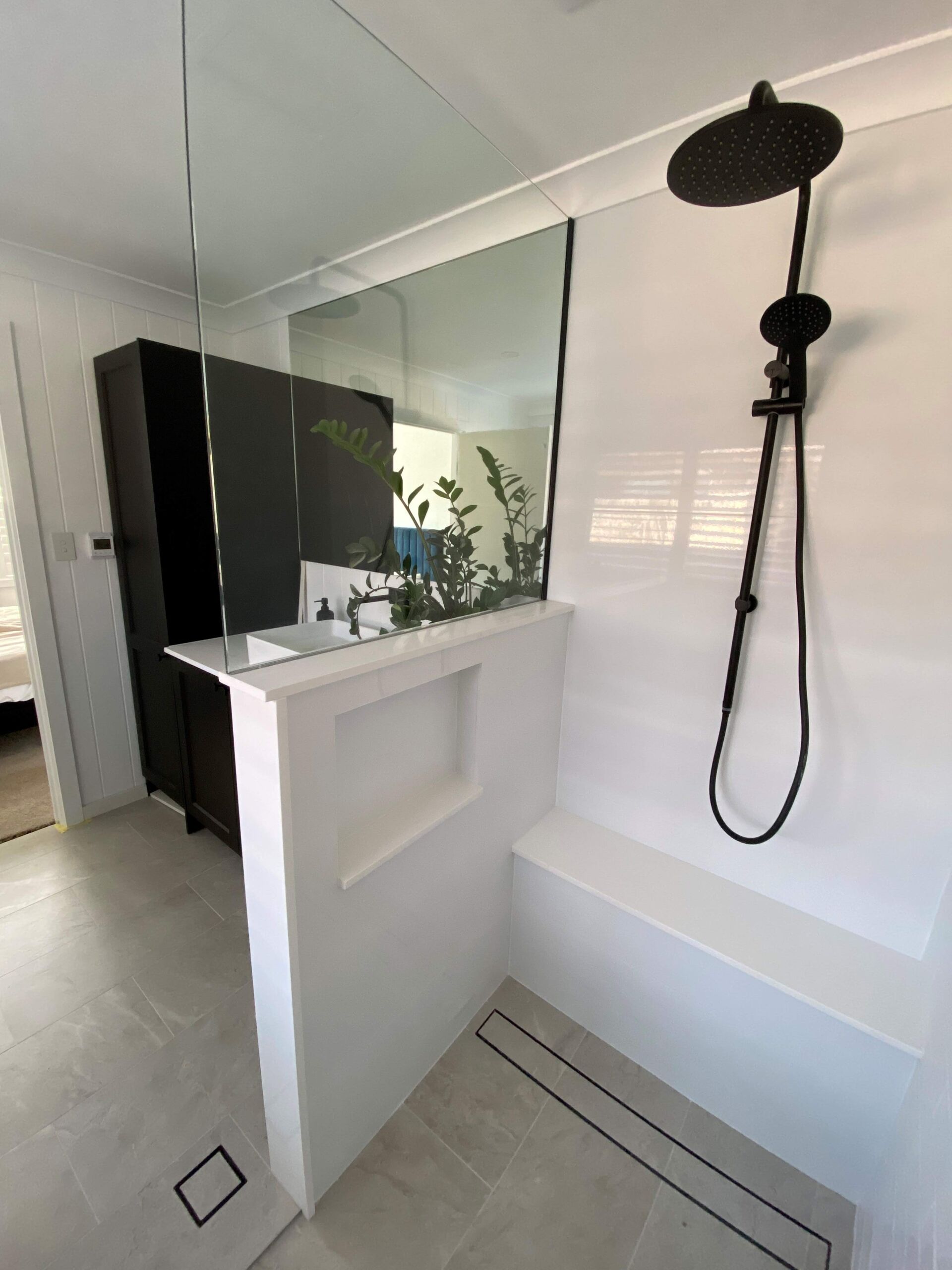 Our Oak Flats client was renovating two bathrooms on her own. She had already begun the demolition work and had sourced her materials and trades. When she encountered a load bearing wall we came in to assist with removing the wall and installing a new support beam. We also installed Villaboard and James Hardie internal lining products.