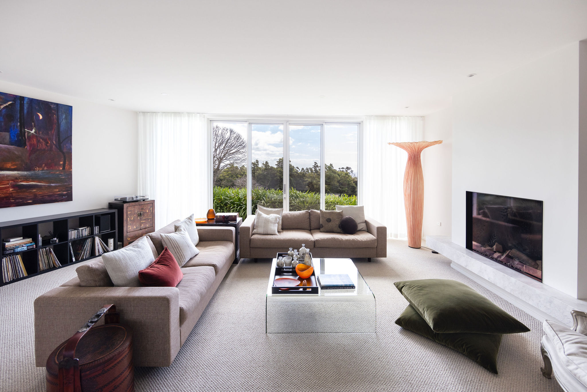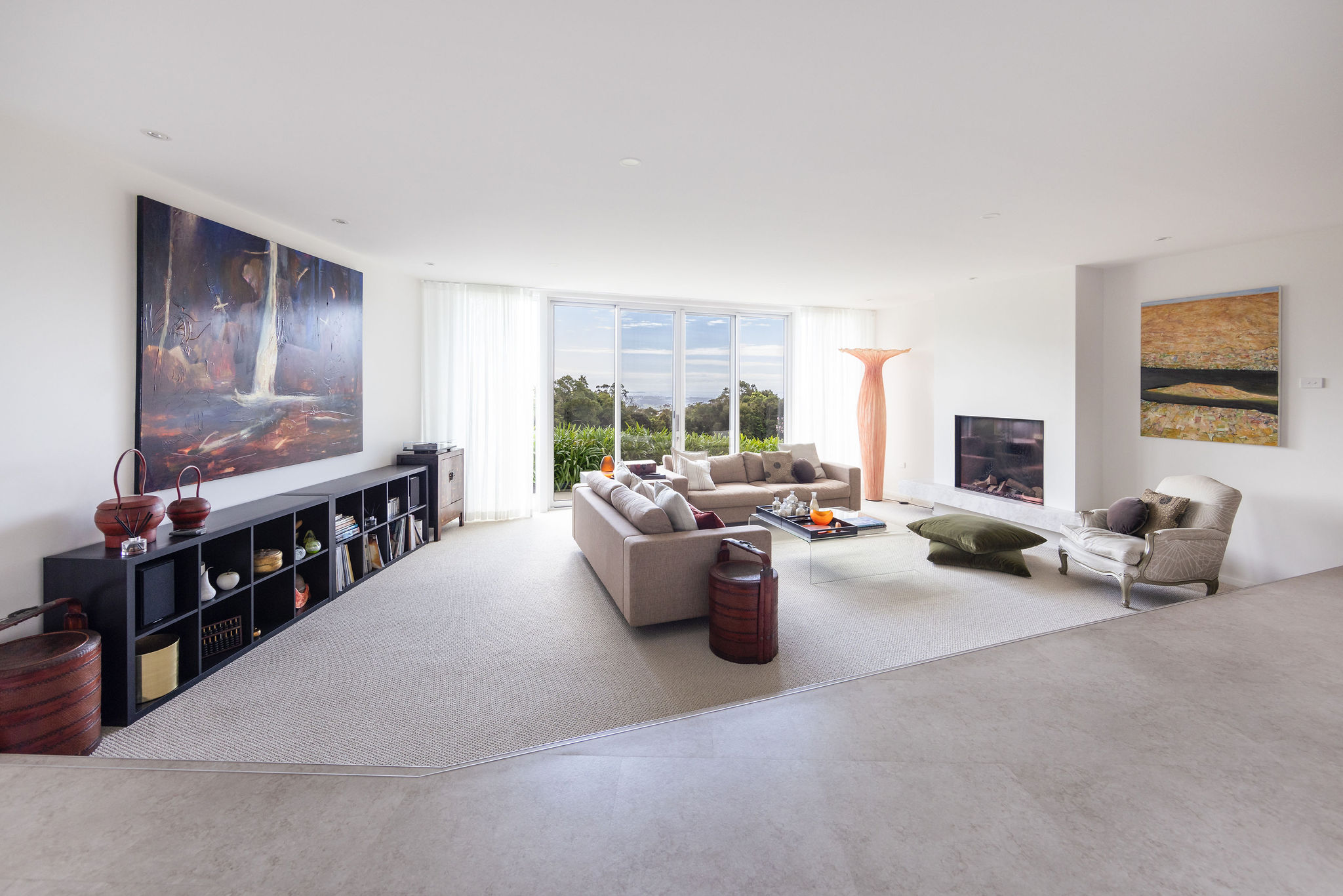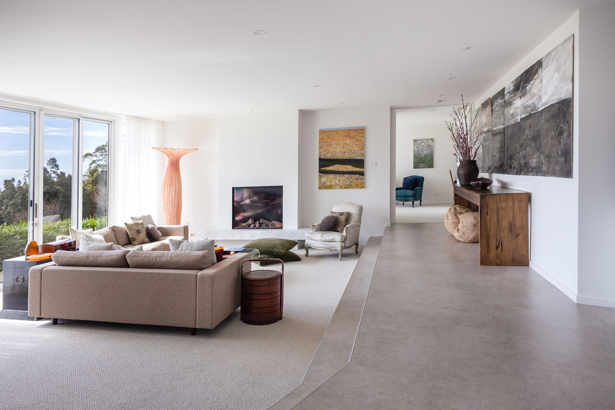 From the moment our clients moved in they began adding their own creative touches to the home and its surrounding gardens. They chose to retain some quirky features of the original dwelling such as the sunken floors in two rooms and the circular plaster feature in the old formal dining room. They also added a warm and inviting fireplace in the formal living room installed by Stoke Fireplace Studio and outdoor tiling and other landscaping works done by Vista Landscapes and Stonework. For the internal renovation they chose a warmer colour palette that flows through the rambling floor plan, providing continuity throughout.